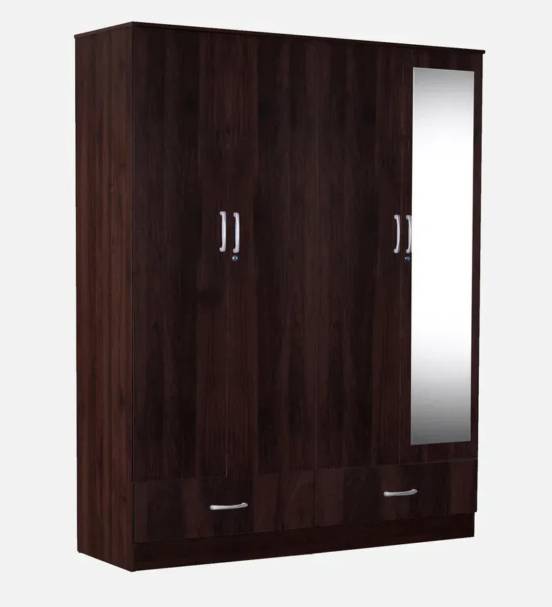 With four doors and a full-length mirror, this wardrobe offers ample storage space for all your clothing, shoes, and accessories while also providing a convenient spot to get dressed and check your outfit.this wardrobe is the perfect size for any bedroom. The sturdy construction ensures that it will last for years to come, while the walnut finish gives it a classic and timeless quality that will never go out of style.