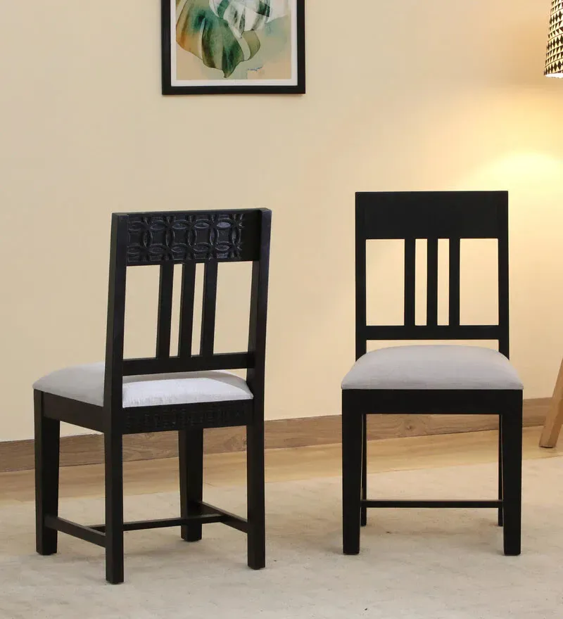 Kawung Solid Wood Dining Chair In Ebony Finish , Introducing our modern wooden dining chairs – the perfect way to add a touch of style and comfort to your dining room. These chairs feature a sleek and modern design that will complement any decor, whether you have a contemporary or traditional style. Crafted from high-quality wood, these chairs are both sturdy and durable, ensuring that you can enjoy them for years to come. The smooth wooden finish adds a natural and warm touch to any dining room and is easy to maintain.Designed with both form and function in mind, these modern dining chairs offer a comfortable seating experience. The ergonomic design ensures that you can sit comfortably for hours, whether you're enjoying a family dinner or hosting a dinner party. These wooden chairs are versatile and can be used for a variety of purposes beyond just dining. They are perfect for use in your home office, living room or as accent chairs in your bedroom.Upgrade your dining experience with our modern wooden dining chairs. With their stylish design and comfortable seating, they are the perfect addition to any home. Order yours today and enjoy the perfect blend of style and comfort!