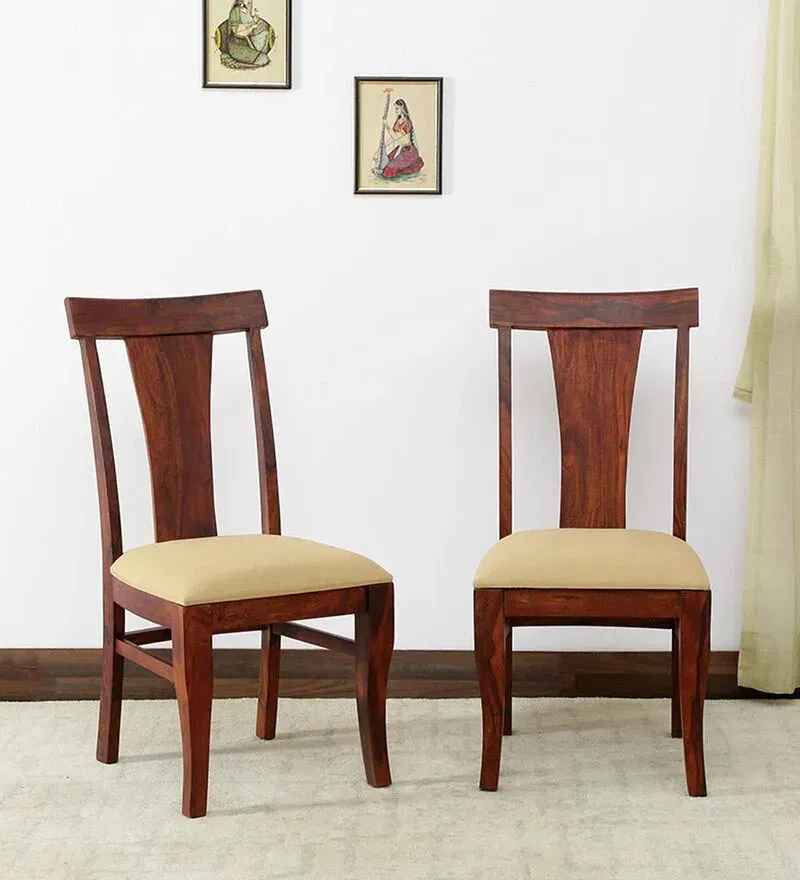 Kentan Sheesham Wood Dining Chair In Honey Oak Finish (Set Of 2 ), Introducing our modern wooden dining chairs – the perfect way to add a touch of style and comfort to your dining room. These chairs feature a sleek and modern design that will complement any decor, whether you have a contemporary or traditional style. Crafted from high-quality wood, these chairs are both sturdy and durable, ensuring that you can enjoy them for years to come. The smooth wooden finish adds a natural and warm touch to any dining room and is easy to maintain.Designed with both form and function in mind, these modern dining chairs offer a comfortable seating experience. The ergonomic design ensures that you can sit comfortably for hours, whether you're enjoying a family dinner or hosting a dinner party. These wooden chairs are versatile and can be used for a variety of purposes beyond just dining. They are perfect for use in your home office, living room or as accent chairs in your bedroom.Upgrade your dining experience with our modern wooden dining chairs. With their stylish design and comfortable seating, they are the perfect addition to any home. Order yours today and enjoy the perfect blend of style and comfort!