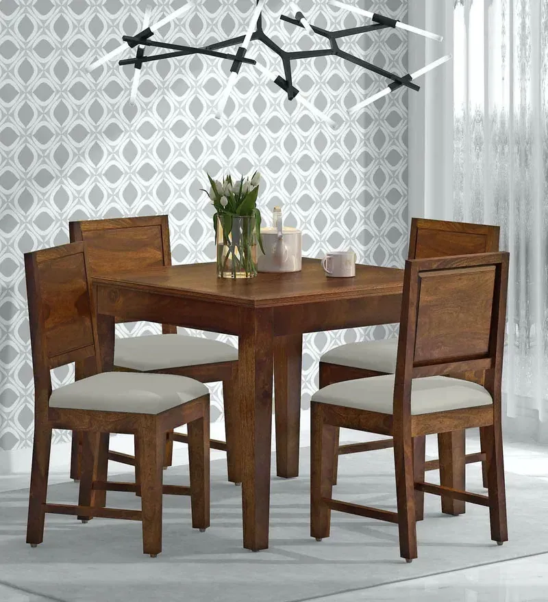 Stanfield Sheesham Wood 4 Seater Dining Set In Provincial Teak Finish is a modern and stylish dining set that includes a table and four chairs. The set features a sleek charcoal-colored finish and is made from durable materials to ensure long-lasting use. The table has a rectangular shape and is supported by four sturdy legs, while the chairs have a comfortable upholstered seat and backrest. The dining set is perfect for small to medium-sized dining rooms or kitchens and can be easily matched with a variety of decor styles.