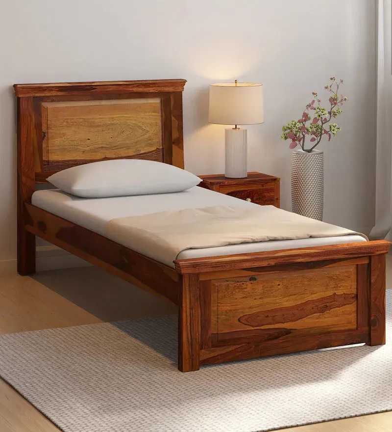 Stanfield Sheesham Wood Single Bed In Honey Oak Finish, Looking for a comfortable and stylish single bed that won't break the bank? Look no further than our updated single bed with storage, now available at an unbeatable price! Crafted from high-quality materials and designed for easy assembly with KD (knock-down) construction, this single bed is the perfect choice for anyone looking to upgrade their sleeping experience without spending a fortune. The compact size makes it ideal for smaller bedrooms or guest rooms, while the convenient storage compartments located beneath the bed provide ample space to keep your room tidy and organized. Measuring [insert single bed size], this bed offers plenty of space for a comfortable night's sleep. The sturdy frame is designed to provide maximum support, ensuring that you wake up feeling rested and refreshed. At Rs.8999/-, this bed is an unbeatable value. Whether you're looking to furnish your first apartment or upgrade your current sleeping situation, this single bed with storage is the perfect choice. With a volume of just 2 cubic meters, this bed is easy to transport and store, making it ideal for anyone who needs to move frequently or wants the flexibility to change up their space. Plus, with a fast delivery time of just 7 day, you can start enjoying your new single bed in no time. Upgrade your sleeping experience with our updated single bed with storage. Order yours today and discover the perfect blend of comfort, convenience, and affordability!